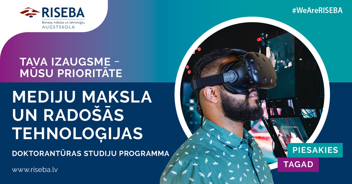 Tiek izsludināta ziemas uzņemšana jaunajā doktorantūras programmā “Mediju māksla un radošās tehnoloģijas”, ko kopīgi realizē Biznesa, mākslas un tehnoloģiju augstskolas RISEBA un Liepājas Universitāte.