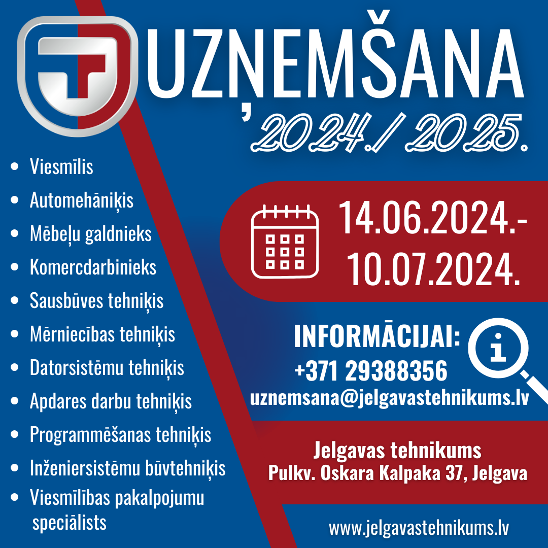 Uzņemšanas kārtība: https://jelgavastehnikums.lv/.../uzne.../uznemsana-2024-2025