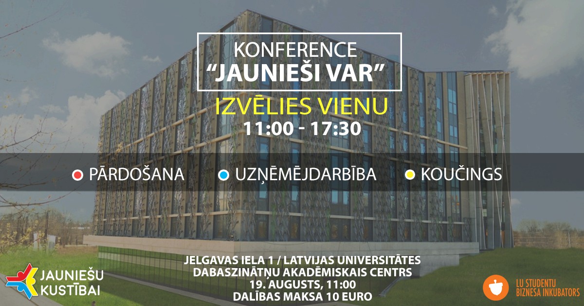 Biedrība "Jauniešu Kustībai" sadarbībā ar Latvijas Universitātes Biznesa inkubātoru ir izveidojusi konferenci - "Jaunieši Var".