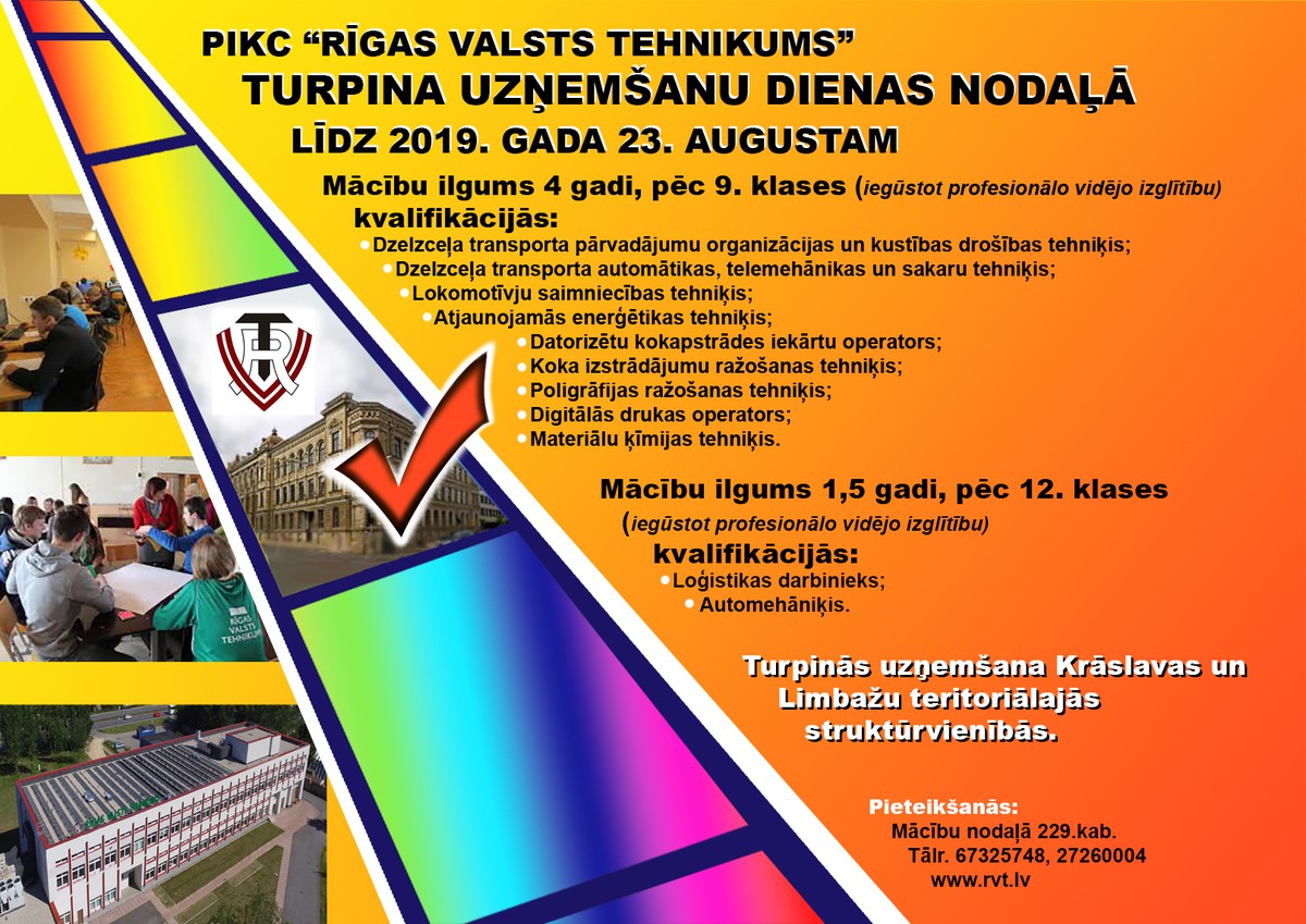 Rīgas Valsts tehnikums turpina uzņemšanu!