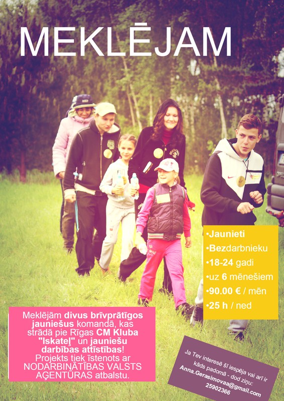Šobrīd mēs meklējam jaunieti ar kuru sadarbosimies NVA (NODARBINĀTĪBAS VALSTS AĢENTŪRAS) jauniešu garantijas atbalsta pasākuma „Darbam nepieciešamo iemaņu attīstība nevalstiskajā sektorā” ietvaros.
