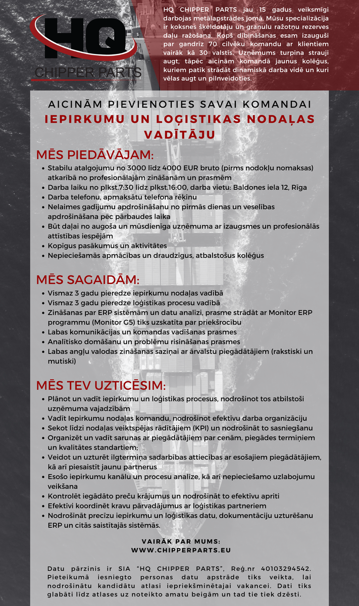 SIA „HQ CHIPPER PARTS” ir jauns, inovatīvs uzņēmums, kas kopš 2010. gada veiksmīgi darbojas metālapstrādes jomā. Mūsu speciālizācija ir koksnes šķeldotāju rezerves daļu ražošana, remonts un restaurācija.