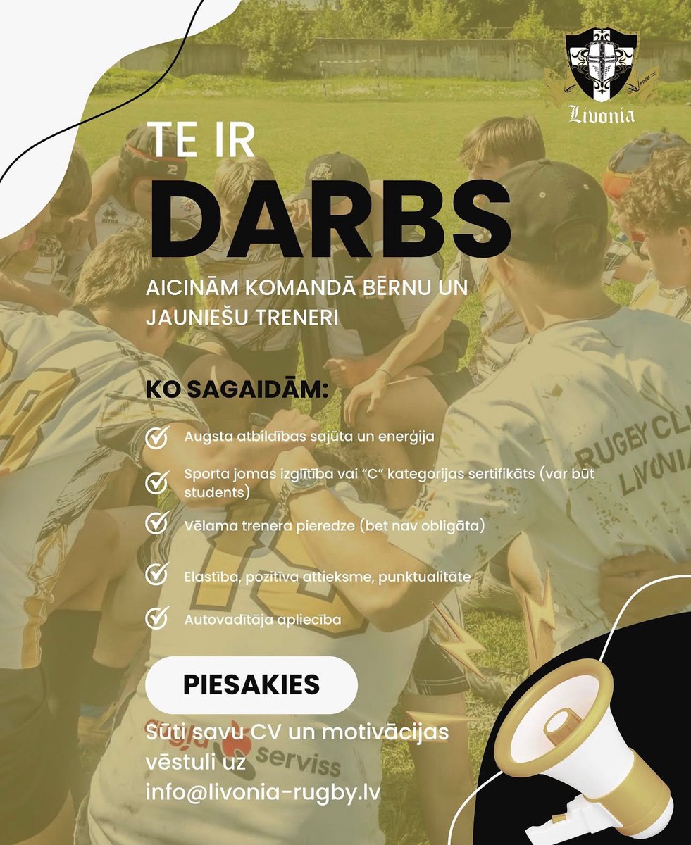 Lūgums CV un motivācijas vēstuli sūtīt uz evija@livonia-rugby.lv vai izmantot iekšējo portāla pieteikšanās sistēmu. Paldies, gaidīsim Tevi!