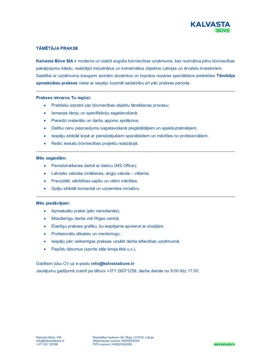 - Internship • Salary(gross): 780 EUR monthly • till 20.02.2026