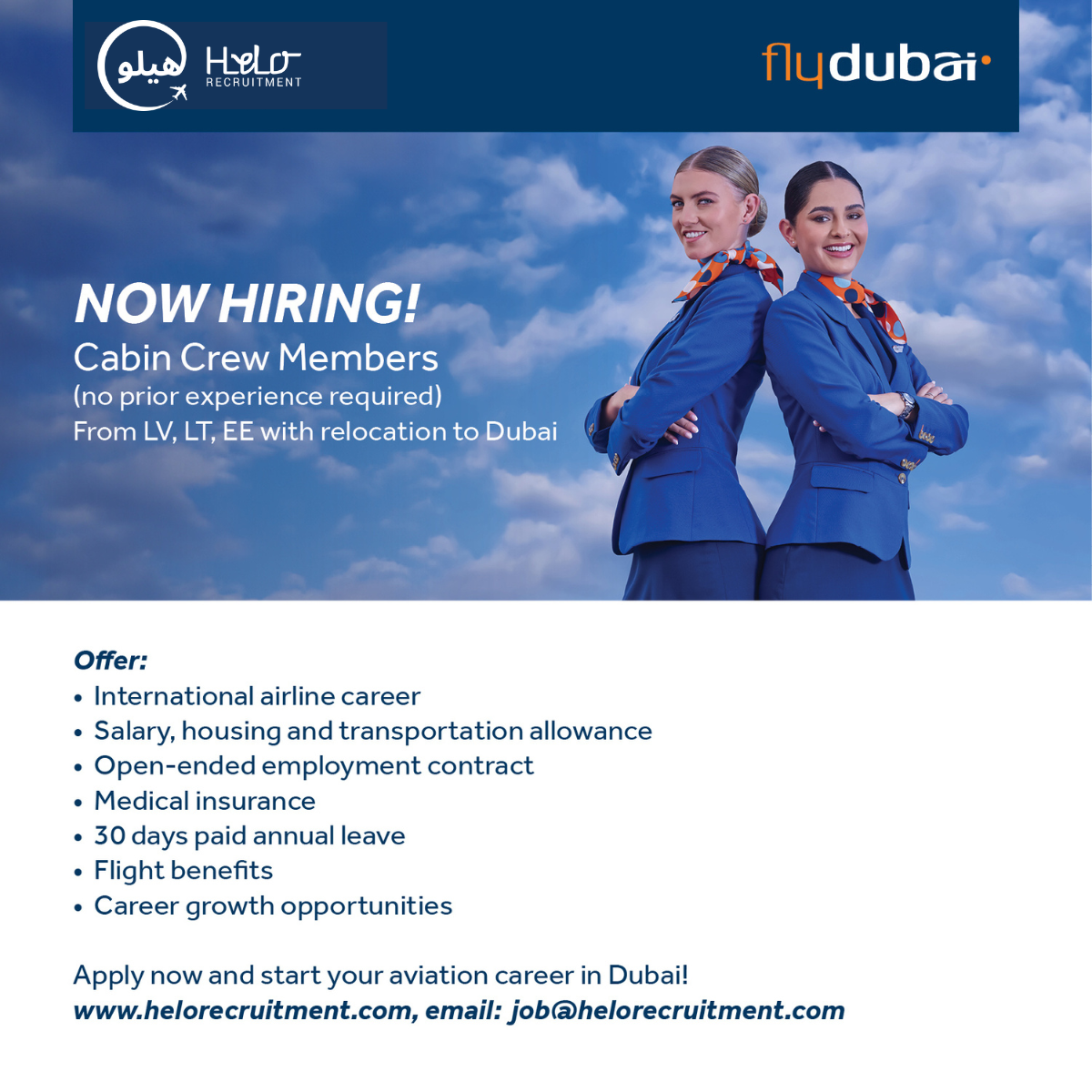 MHC Aviation partneruzņēmums, Helo Recruitment, mūsu klienta flydubai vārdā meklē stjuartus/stjuartes bez iepriekšējas pieredzes no Baltijas valstīm (Lietuvas, Latvijas un Igaunijas) darbam Dubaijā.
