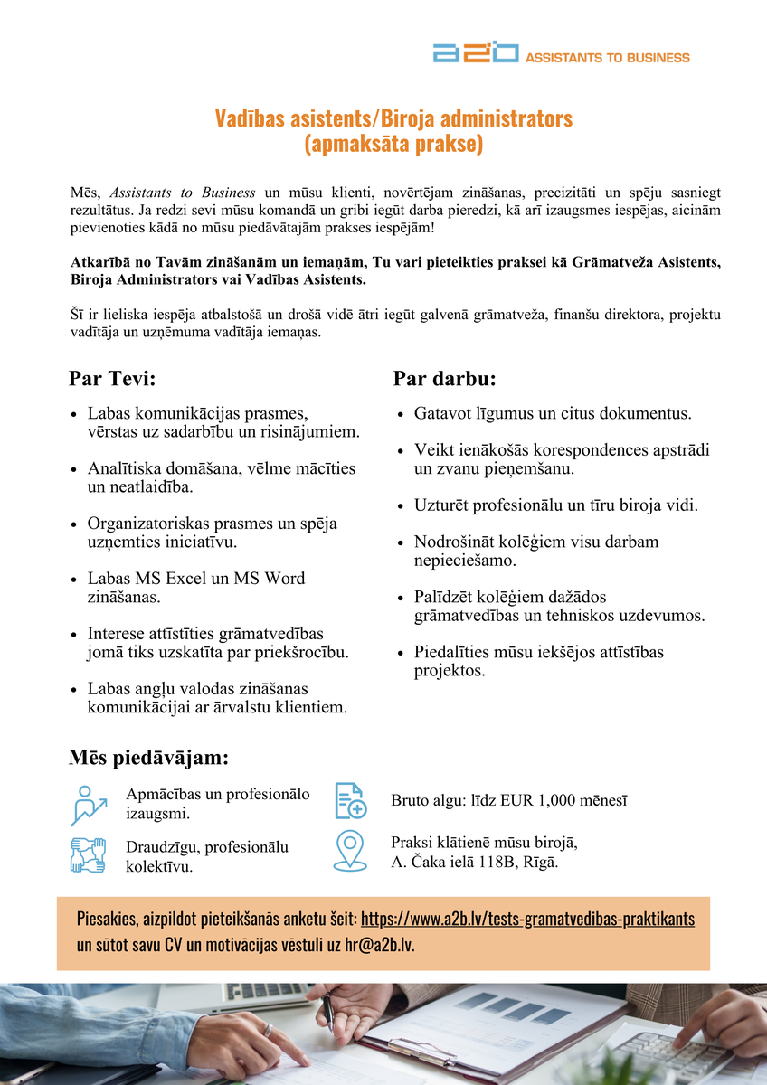 Vadības asistents/Biroja administrators (apmaksāta prakse)