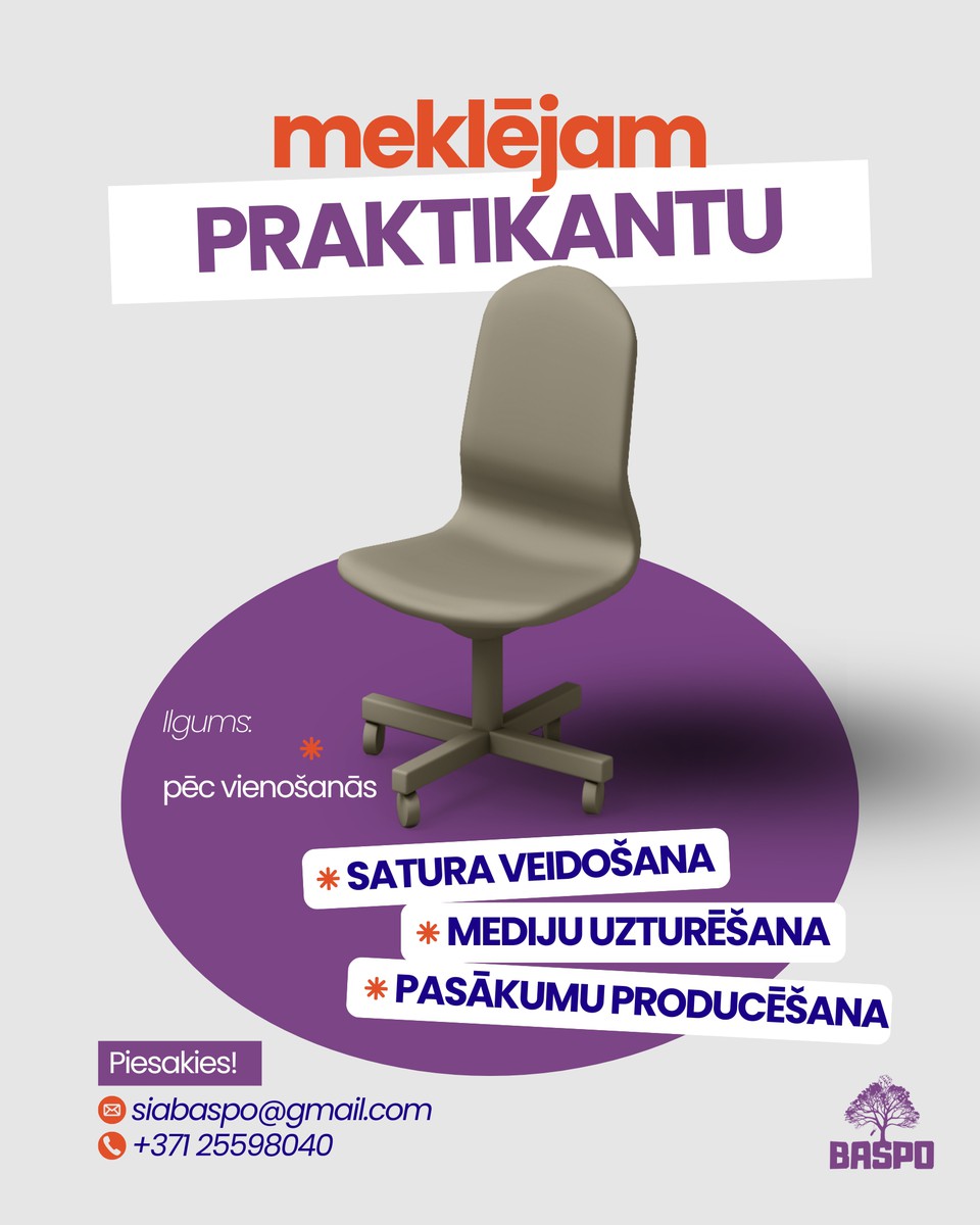 Meklējam kreatīvu un idejām bagātu cilvēku, kurš nebaidās no izaicinājumiem, ir iniciatīvas pilns un gatavs nākt pie mums ar savām idejām. Mums svarīgi, lai Tu ne tikai izpildītu uzdevumus, bet arī domātu līdzi, piedāvātu jaunus risinājumus un palīdzētu veidot BASPO tēlu arvien spēcīgāku.