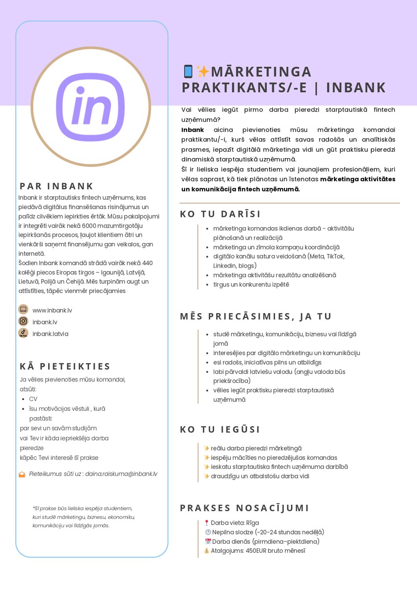 Piesakies praksei: daina.raiskuma@inbank.lv