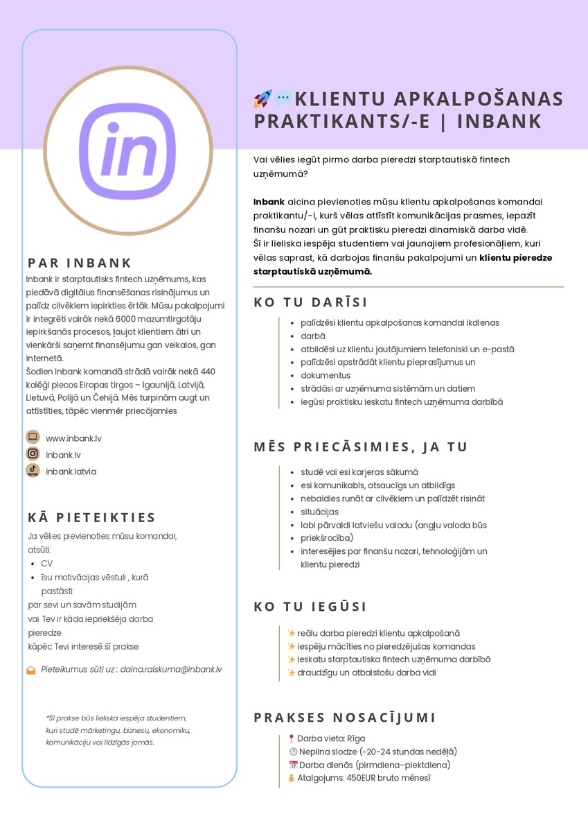 ✨ reālu darba pieredzi klientu apkalpošanā