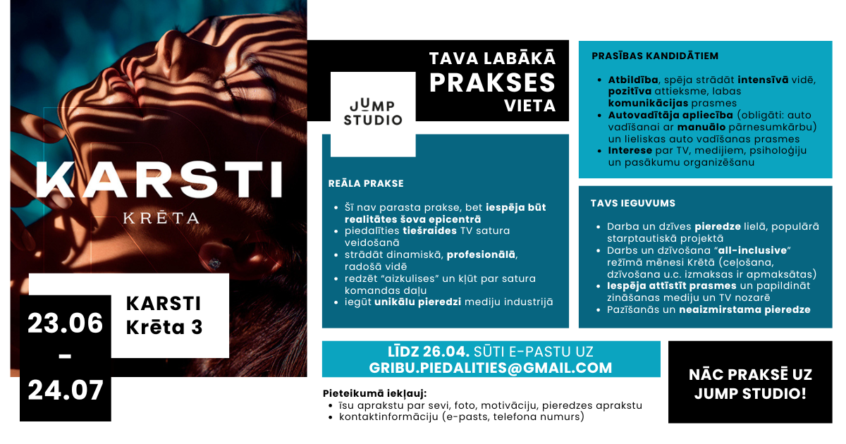Piedāvājums PRAKTIKANTIEM dalībai populārā TV šova "KARSTI. Krēta 3" plānošanā un filmēšanā