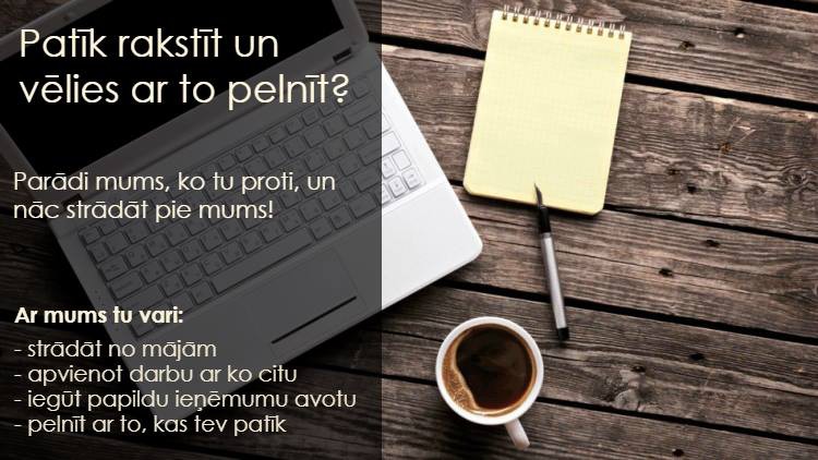 Piedāvājums cilvēkiem, kas prot un kam patīk RAKSTĪT interesantus un dažādām vajadzībām atbilstošus tekstus!